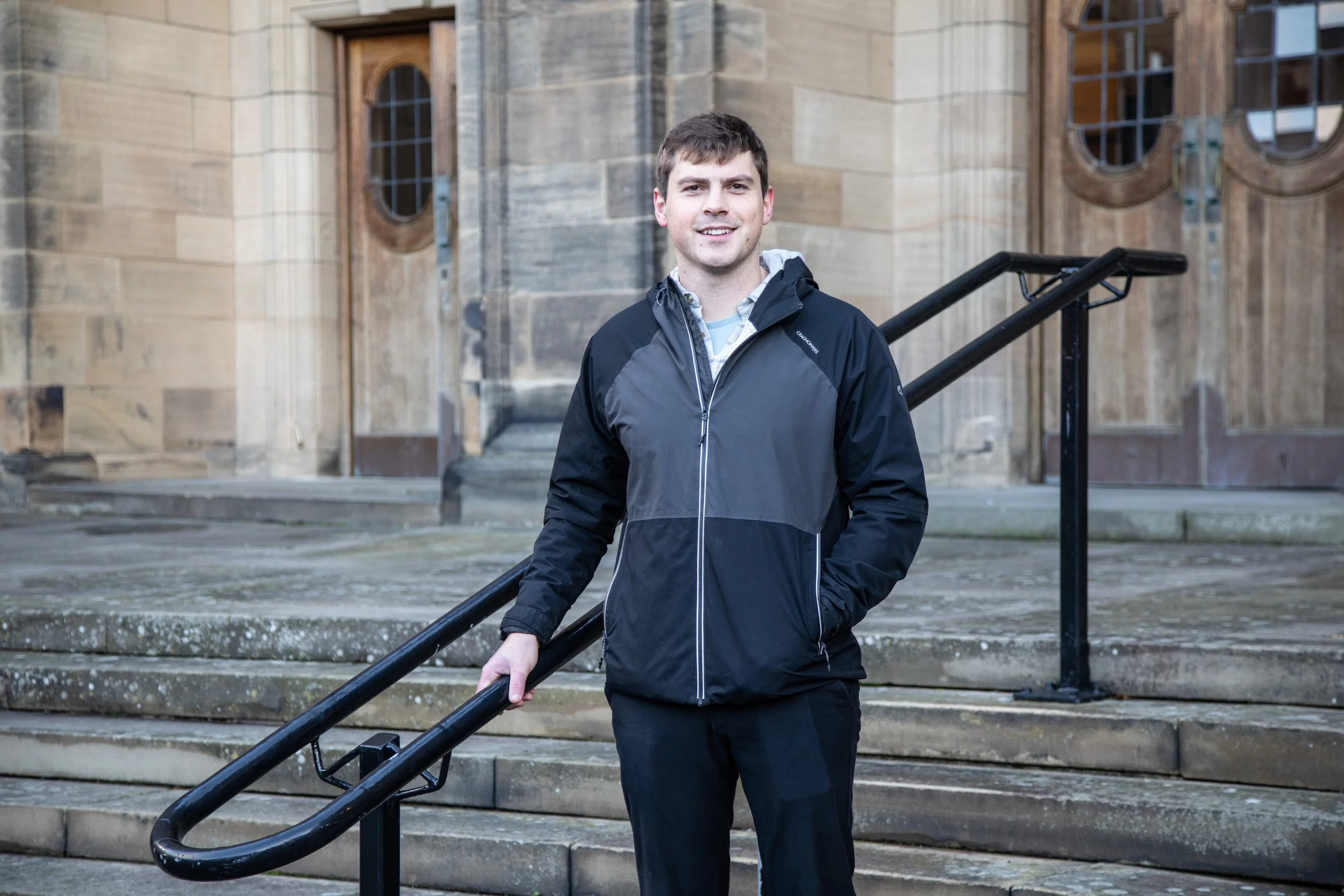 Researcher Alex Rigby outside Bangor University, Bangor, Wales, UK.